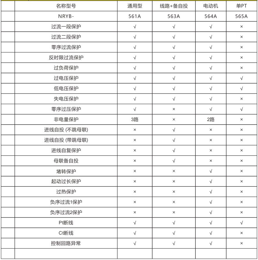 | 零序过压保护 | √ | √ | √ | / | / | |